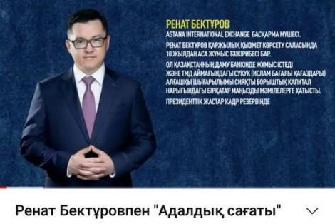 Президенттік кадр резервінің жеңімпазы Ренат Бектуров «Адалдық сағатын» өткізді.